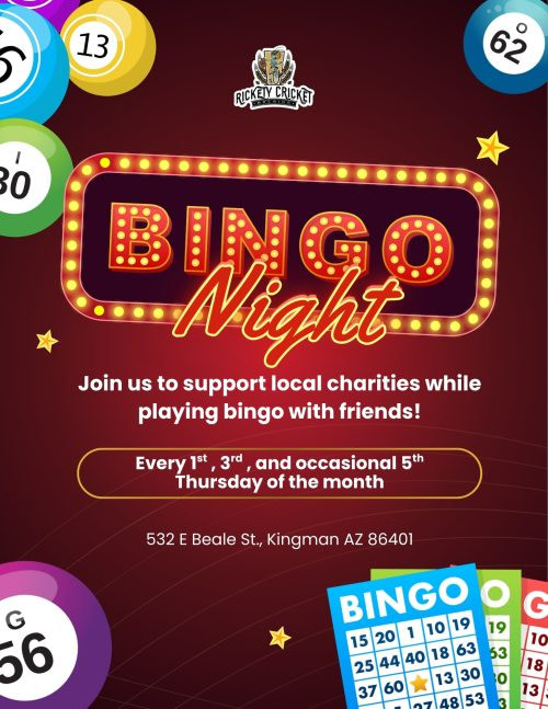 Enjoy Bingo Night for A Cause every 1st and 3rd Thursday of each month. Join us to support local charities while playing bingo with friends! More details coming soon. |